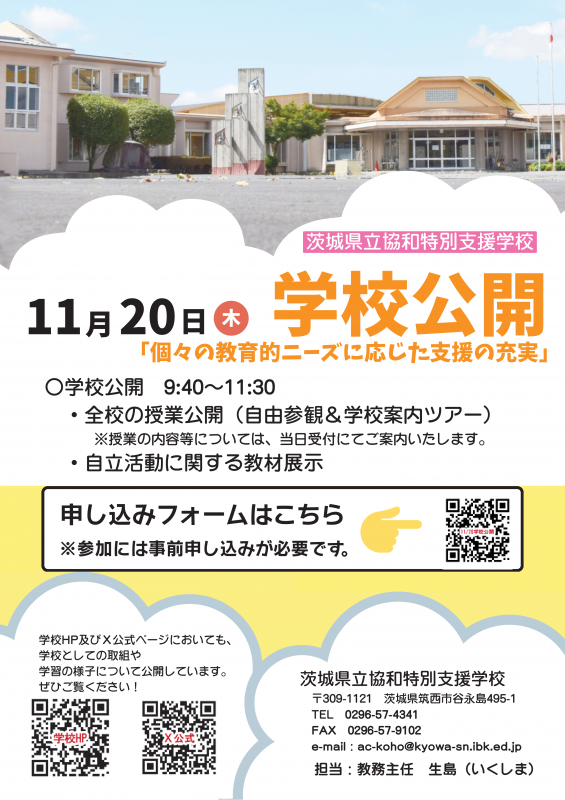 本校では、令和7年11月20日(水)に学校公開を実施いたします。
